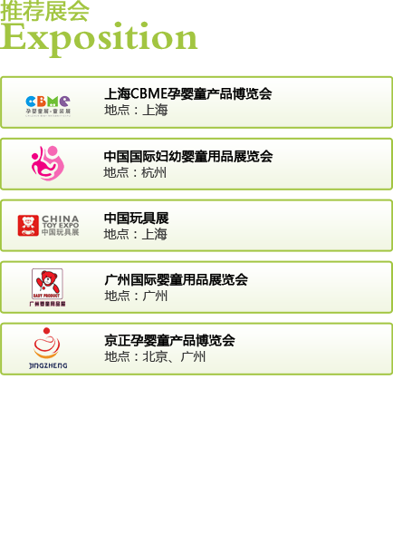每年在上海CBME孕嬰童·童裝展、中國國際嬰童用品博覽會、廣州玩具展、中國國際婦幼嬰童用品展覽會、中國國際服裝服飾博覽會(CHIC)等數十家展會刊登全版會刊彩頁超過100頁。