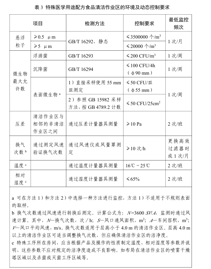 《細則》進一步明確作業區環境衛生控制要求,新增特殊醫學用途配方食品清潔作業區的環境及動態控制要求表,明確懸浮粒子、微生物最大允許數、換氣次數、沉降菌菌數的控制限值及各項目最低監控頻次。同時,《細則》進一步細化了固態產品生產、特殊工序管控、生產設備等要求,旨在從生產環境源頭筑牢安全防線。