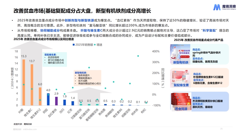 改善貧血需求場景化、年輕化升級,新型有機鐵、復配維生素成分商品成為市場主流