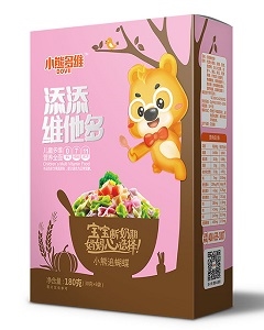 - 品牌特色:小熊多維添添維他多,始終堅(jiān)持“無(wú)鹽”、“”,將健康,優(yōu)質(zhì),這一宗旨貫穿于原材料的篩選及產(chǎn)品生產(chǎn)的全過(guò)程。精心選材、精確配比、均衡搭配。