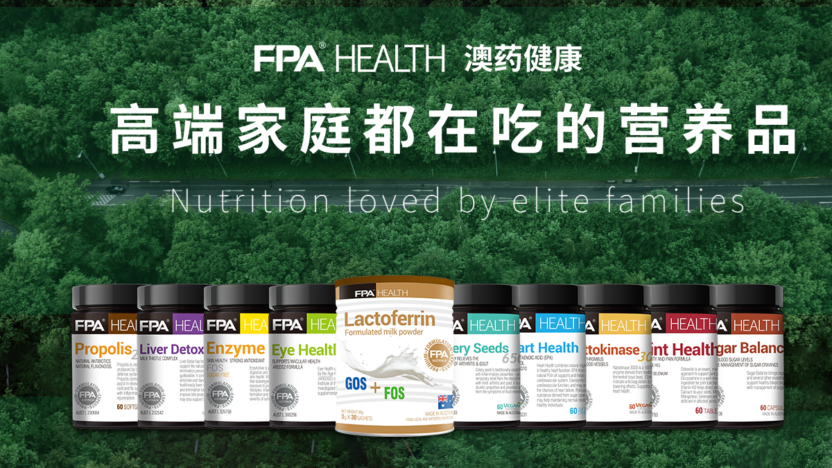 FPA HEALTH是澳大利亞澳藥集團(FPA)旗下子品牌,依托三十年生命科學沉淀,謹守中澳兩國行業TGA標準,堅持澳洲原裝制造,根植于精深的營養學研究,以天然植萃力量,構建身體更好的健康環境,符合全球高端家庭營養均衡之需。目前,FPA HEALTH建立澳洲獨立實驗室,擁有超6000個自主研發配方,成長為中國營養保健食品知名品牌,F陸續推出護肝片、護眼片、芹菜籽(痛風膠囊)、血糖平、NMN(御齡丸)、NAD+(逆齡丸)、酵素片、 輔酶Q10(護心寶)、 蜂膠軟膠囊、溶栓片(納豆激酶)、成人乳鐵蛋白等12大熱銷產品。