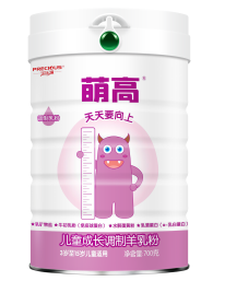 萌高兒童成長羊乳粉專注我國兒童身高研發而成,結合中國兒童日常飲食、生活習慣、社會發展等因素,西北農林科技大學席科學家曹斌云領銜研發一款針對3--15歲兒童發育的兒童成長羊乳粉。營養素添加40余種,特別添加乳鈣、水解蛋黃粉、免疫球蛋白、乳白蛋白、磷脂酰絲氨酸等。