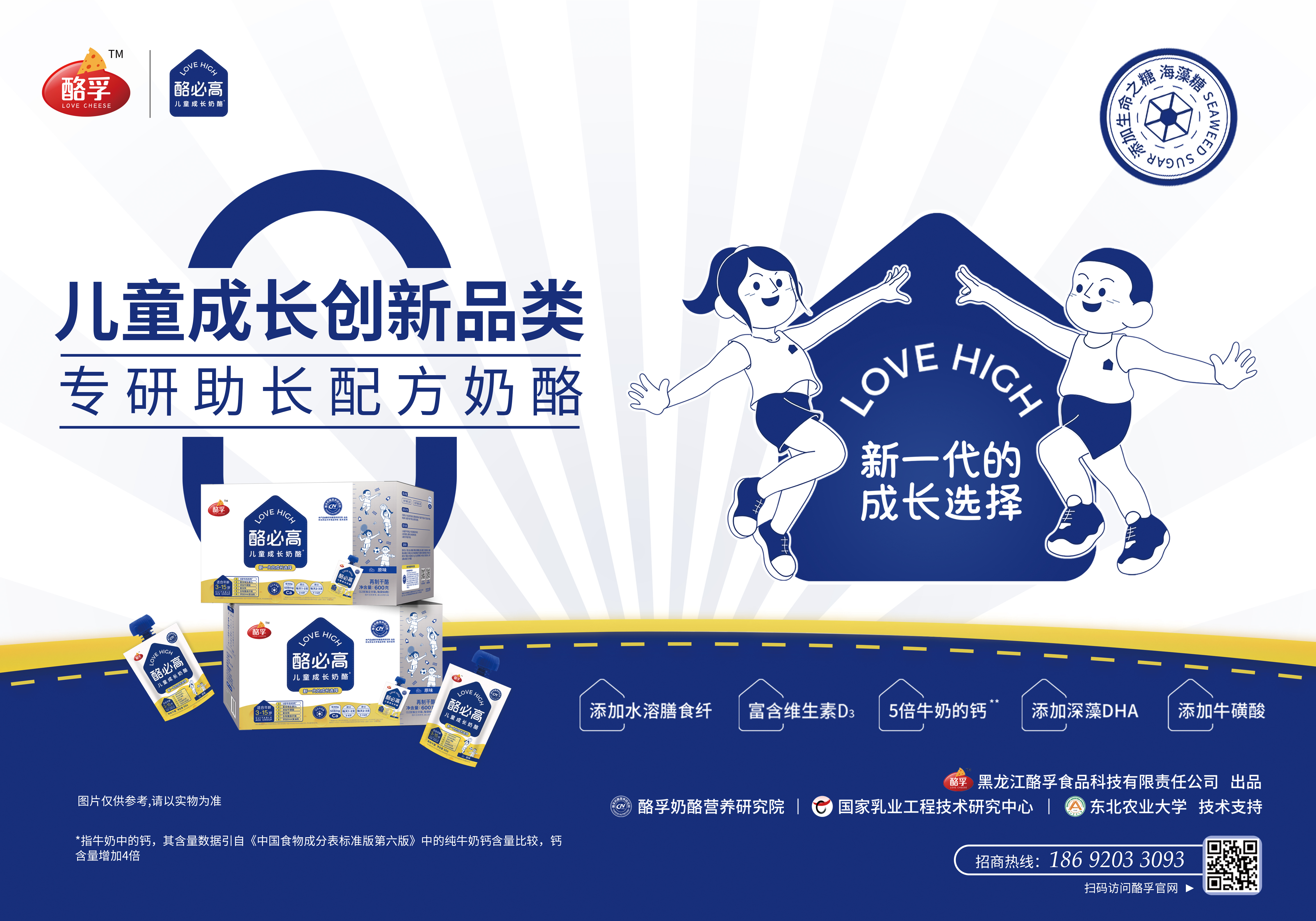 酪必高以“自然、科學”為出發點,以動態發展觀為視角探尋兒童成長的天然規律,在鎖定兒童成長過程中核心營養要素,依據各階段的變量規律搭配更貼合兒童成長的多維營養,專研兒童助長配方,聚全球優質資源、采現代制備工藝,濃縮了牛奶精華,開發出更適合中國3-15歲兒童食用的奶酪+營養食品。