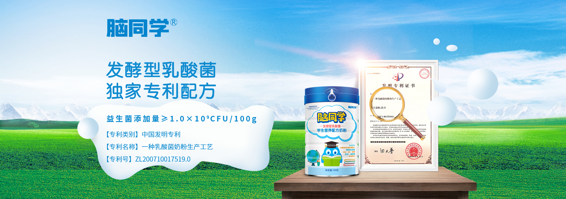 腦同學是英童乳業旗下的一款高端學生營養配方奶粉,專為3-14歲學生量身定制,采用發酵型乳酸菌專利工藝(中國專利號:ZL200710017519.0),5大成長營養動力,均衡成長所需。其中特別添加核桃多肽、乳脂球膜、磷脂酰絲氨酸等因子,為孩子大腦提供營養支持!成長關鍵營養,一站式補充,激發孩子無限潛能,創造無限未來!喝高端學生奶粉,就選腦同學!