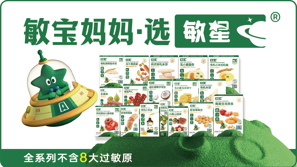 敏星全系列產(chǎn)品均不含八大常見食品過敏原,這大大降低了敏寶發(fā)生過敏反應的風險。然而,鑒于每位敏寶的體質(zhì)差異以及過敏源的多樣性,敏星無法確保對所有敏寶均無過敏,但我們始終致力于為敏感體質(zhì)的寶寶提供更安全、更健康的選擇。