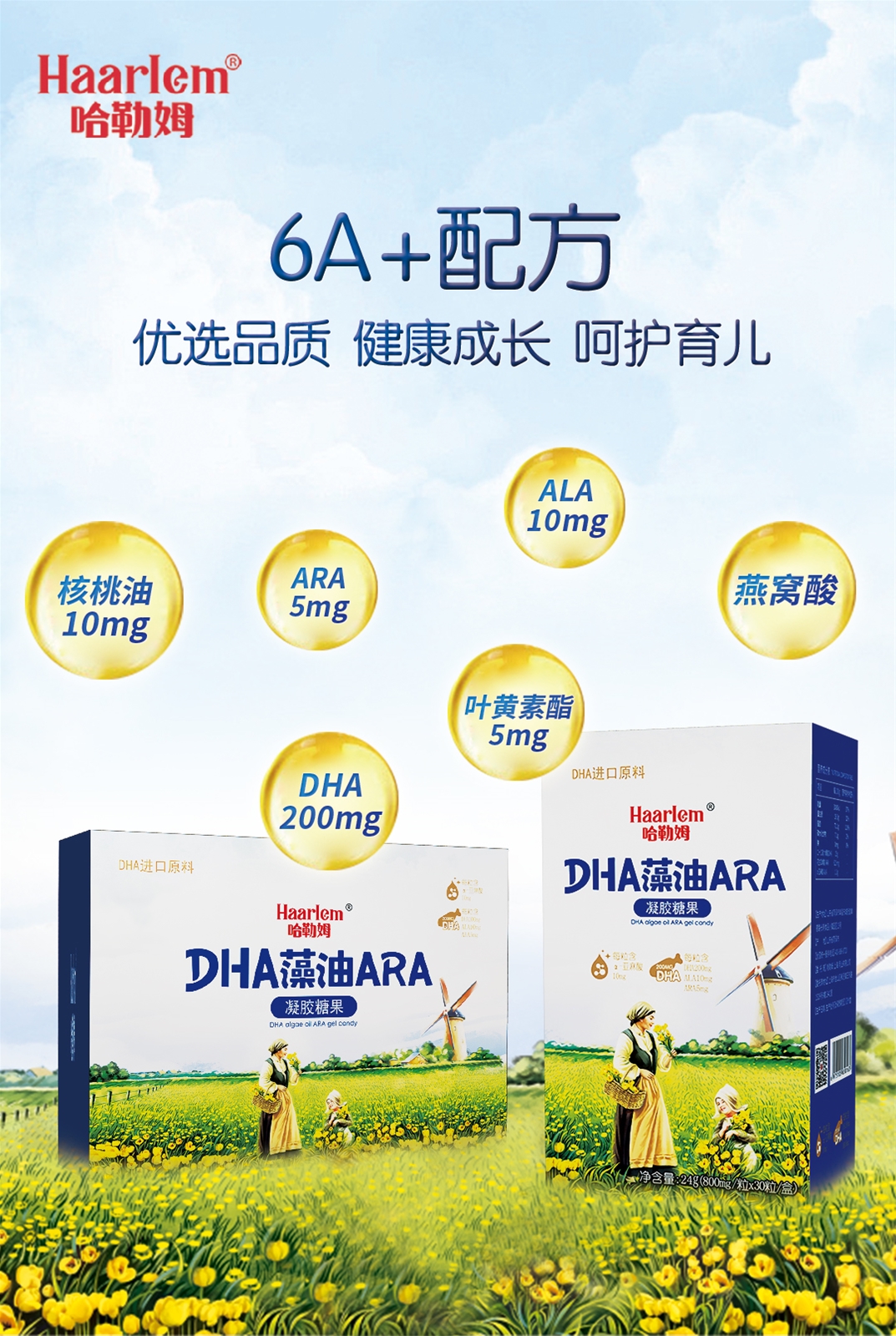 哈勒姆DHA藻油ARA凝膠糖果采用6A+配方: