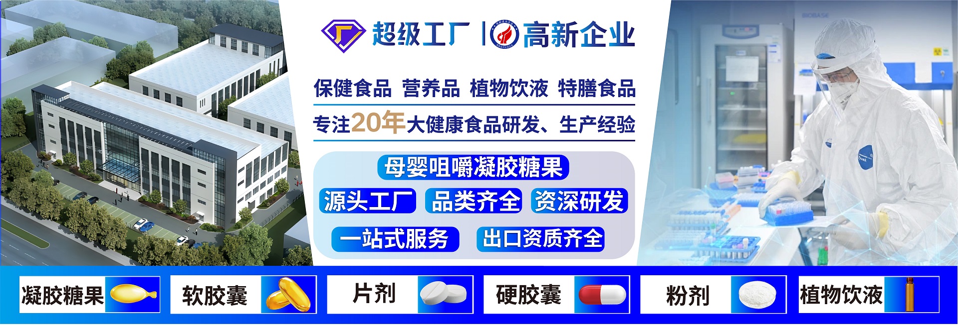 山東中舜生物科技有限公司是集保健食品、特膳食品-運(yùn)動(dòng)營養(yǎng)全品類、特膳飲、精準(zhǔn)功能營養(yǎng)食品;研發(fā)、生產(chǎn)、OEM/ODM銷售于一體的高新技術(shù)企業(yè)。公司現(xiàn)有凈化車間20000余平方米,嚴(yán)格遵循國家十萬級(jí)GMP 認(rèn)證標(biāo)準(zhǔn)和綠色環(huán)保可持續(xù)發(fā)展理念,致力于打造全球領(lǐng)先的保健食品、特膳食品和功能營養(yǎng)健康食品數(shù)字化生產(chǎn)工廠。可生產(chǎn)軟膠囊、硬膠囊、片劑、粉劑、凝膠糖果、特膳飲、爆珠等多種劑型。已獲藍(lán)帽保健食品批文20余個(gè)、已開發(fā)特膳食品運(yùn)動(dòng)營養(yǎng)6個(gè)品類100多種產(chǎn)品和精準(zhǔn)功能營養(yǎng)食品儲(chǔ)備配方1000多個(gè)。擁有國產(chǎn)和進(jìn)口自動(dòng)化生產(chǎn)線近30條;OEM/ODM 年產(chǎn)能可以滿足軟膠囊30億粒、硬膠囊10億粒、片劑15億片、粉劑2000噸、顆粒劑500噸、特膳飲5000萬支、爆珠10億粒。先后通過了GMP認(rèn)證、ISO認(rèn)證、HACCP認(rèn)證、美國FDA注冊(cè)、出口歐盟水產(chǎn)認(rèn)證、BRC-SGS認(rèn)證。