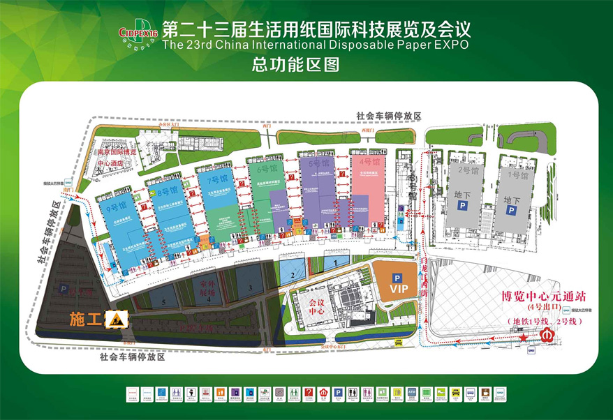 品類分區:生活用紙展區、婦幼呵護用品展區、擦拭巾/非織造布制品/老人護理用品/嬰童衛生用品展區、嬰童衛生用品展區、非織造布展區、包裝及印刷展區、高吸收性樹脂展區、熱熔膠展區、其他原輔材料展區、衛生紙機及配件展區、衛生用品設備展區、熱熔膠機展區、非織造布/濕巾設備展區、衛生紙加工設備展區、包裝設備展區