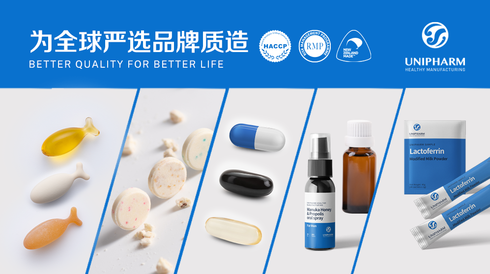 新西蘭聯合制藥 (Unipharm Healthy Manufacturing Co., Ltd) 建廠于1979年,擁有超過四十年的保健品營養食品研發生產經驗,致力于成為全球優質的營養健康解決方案服務商,為嚴選客戶“質造”高標準營養產品。
