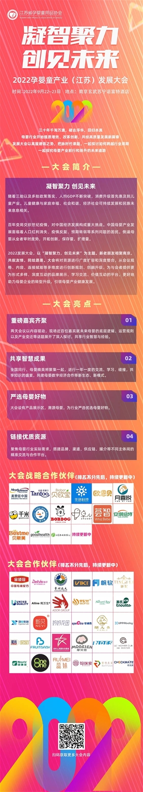 2022 孕嬰童產業 (江蘇) 發展大會,由江蘇省孕嬰童用品協會主辦,以“凝智聚力,創見未來”為主題。新老朋友相聚南京,共敘友情,同繪愿景。既展望行業未來趨勢格局, 又共討后疫情時代母嬰行業新格局、新消費、新模式、新營銷……