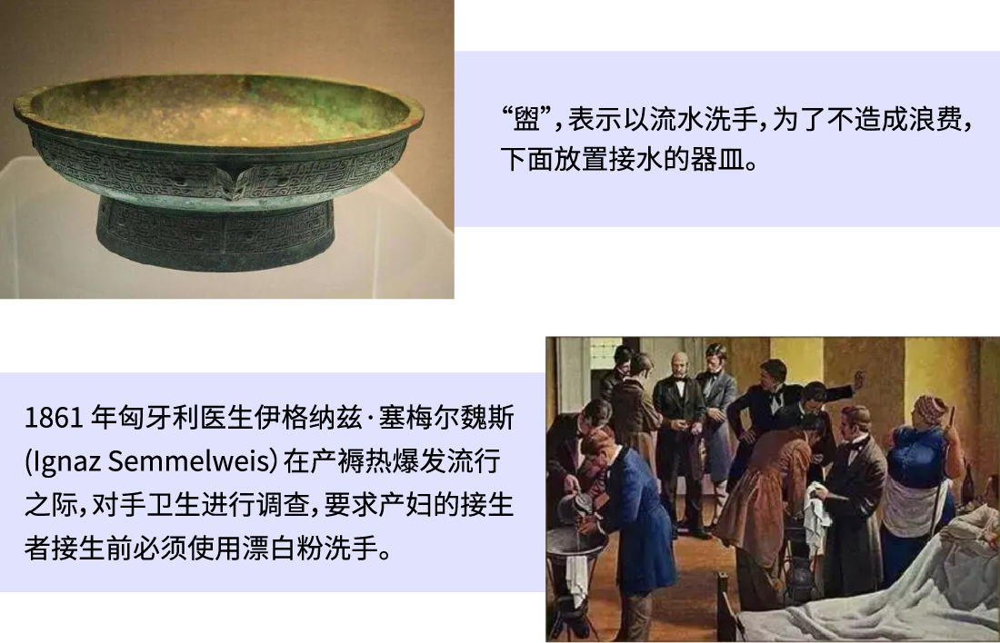 據考古學家考證,大約在2500年前,古人就以流水洗手,以避免雙手交叉污染。