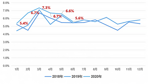 營養食品在母嬰門店的貢獻占比近3年來逐漸提升,2020年上半年已達到6.4%,今年營養食品依然保持上漲態勢,對門店的銷售額貢獻將繼續提升。