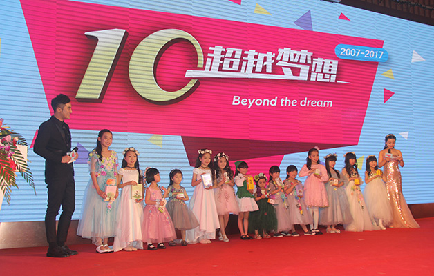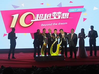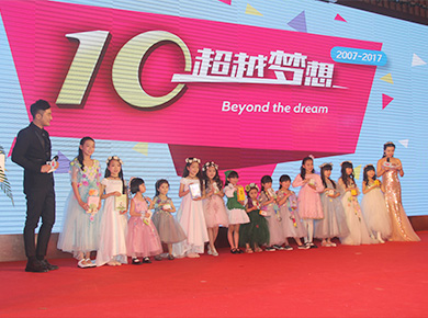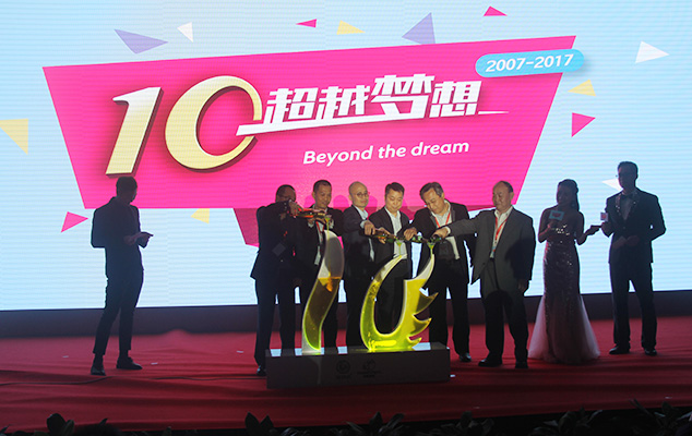 典禮接近尾聲的時候,獎項全部頒布完畢,主持人宣布由舒菲婭的劉總及代表嘉賓和員工一同上臺,進行十周年慶典點亮儀式。他們手持香檳,懷著激動的心情,將滿心的喜悅與期待隨著手里的酒撒向象征著舒菲婭十周年的點亮臺,隨著一束束光亮起,安貝兒宣布“超越夢想”十周年慶典正式啟動。