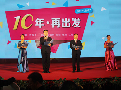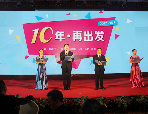 頒獎過程中,有一個節目也是令人印象深刻,那就是由安貝兒四位員工代表表演的節目——詩朗誦《十年,再出發》。這首詩由舒菲婭的總經理劉雨飛親自執筆,洋洋灑灑,輝煌澎湃,一氣呵成,由四位感情充沛,語言能力優秀的員工代表上臺演繹,深刻表達了十年來舒菲婭與全體員工艱難開始和共同發展的心路歷程,十年風雨無數感動的瞬間在此刻呈現,舞臺上下所有觀眾一同見證這令人動容的時刻。