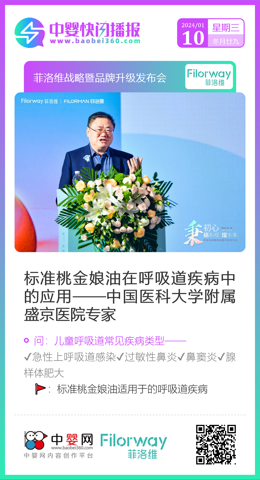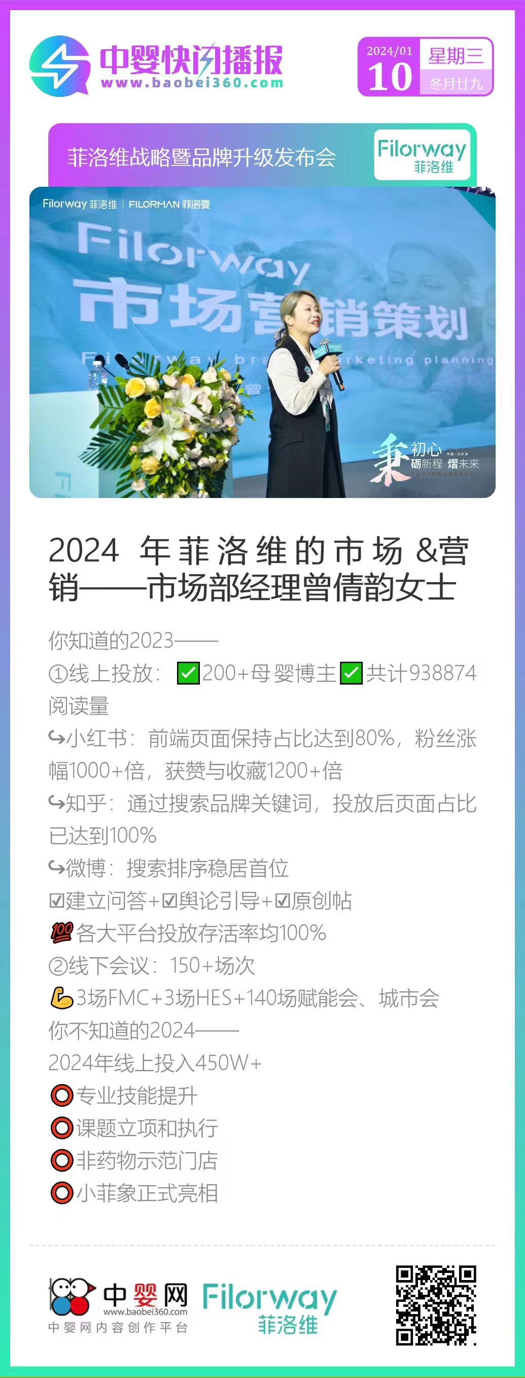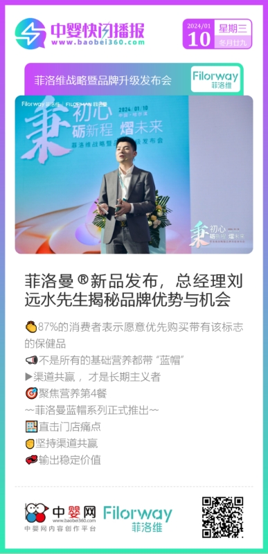 2024年1月10日,菲洛維戰(zhàn)略暨品牌升級(jí)發(fā)布會(huì)在哈爾濱盛大召開(kāi)。華瑞寶總經(jīng)理劉遠(yuǎn)水先生、華瑞寶銷(xiāo)售總監(jiān)黃炎波先生、中國(guó)優(yōu)生優(yōu)育協(xié)會(huì)理事王昆部長(zhǎng)、中嬰網(wǎng)聯(lián)合創(chuàng)始人張文婷女士、中國(guó)醫(yī)科大學(xué)附屬盛京醫(yī)院小兒呼吸內(nèi)科主任尚云曉教授蒞臨現(xiàn)場(chǎng),共同見(jiàn)證。來(lái)自全國(guó)各地的優(yōu)秀門(mén)店、經(jīng)銷(xiāo)商和行業(yè)專(zhuān)家齊聚一堂。