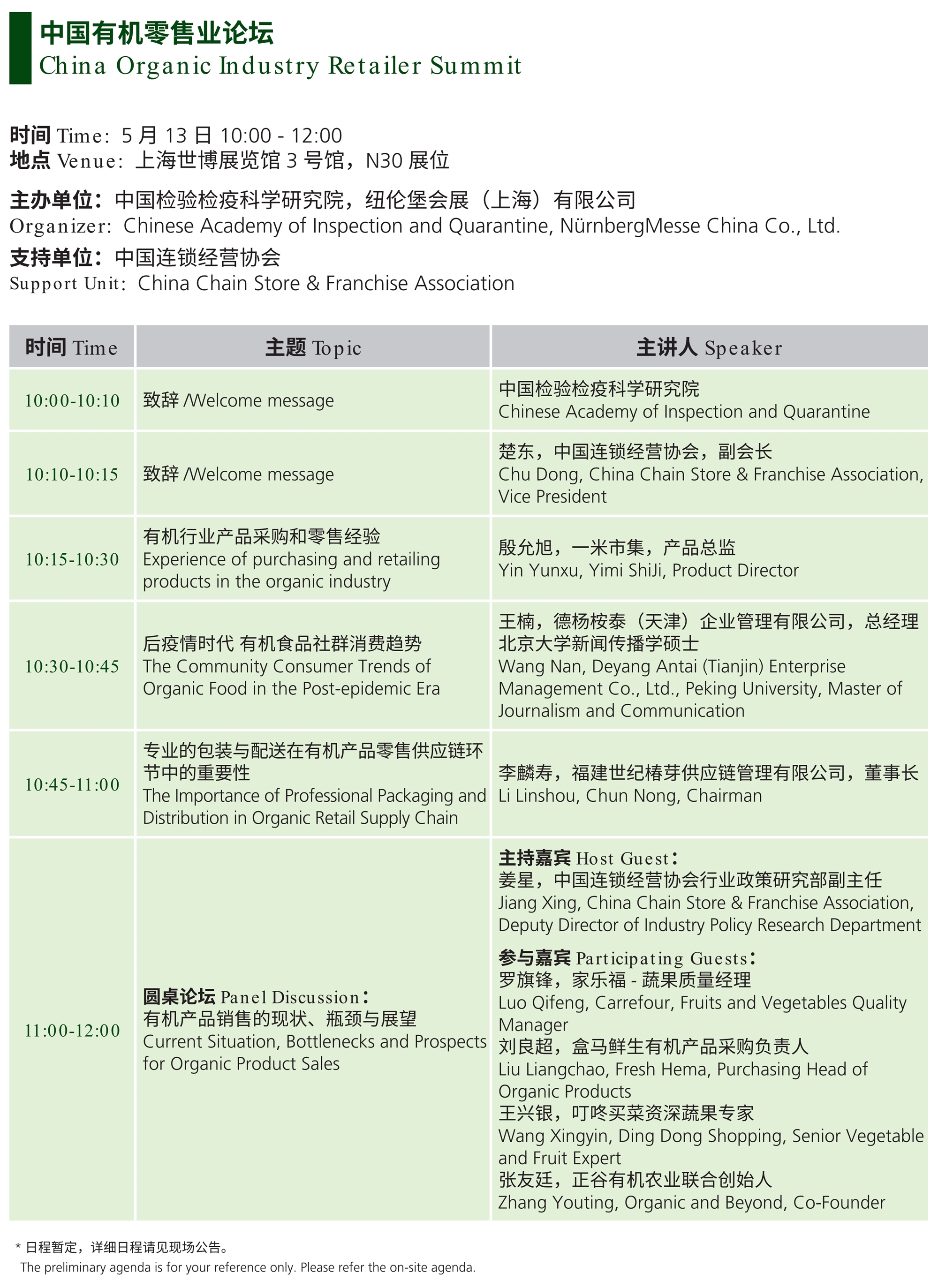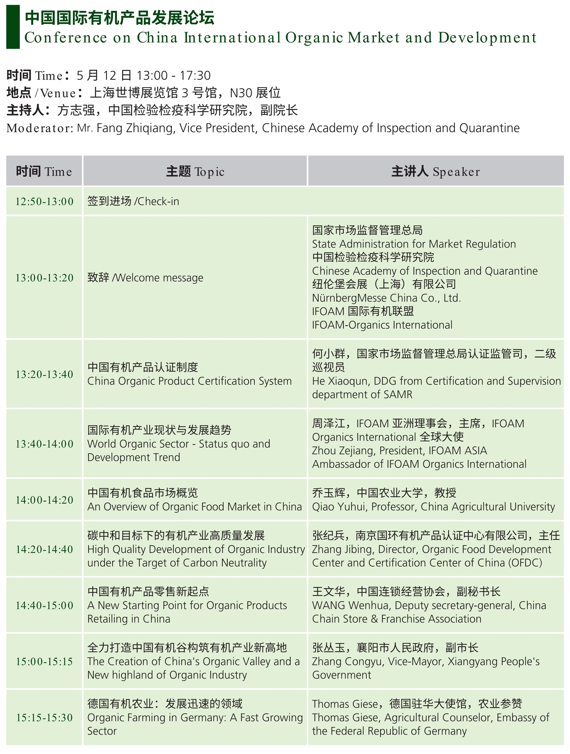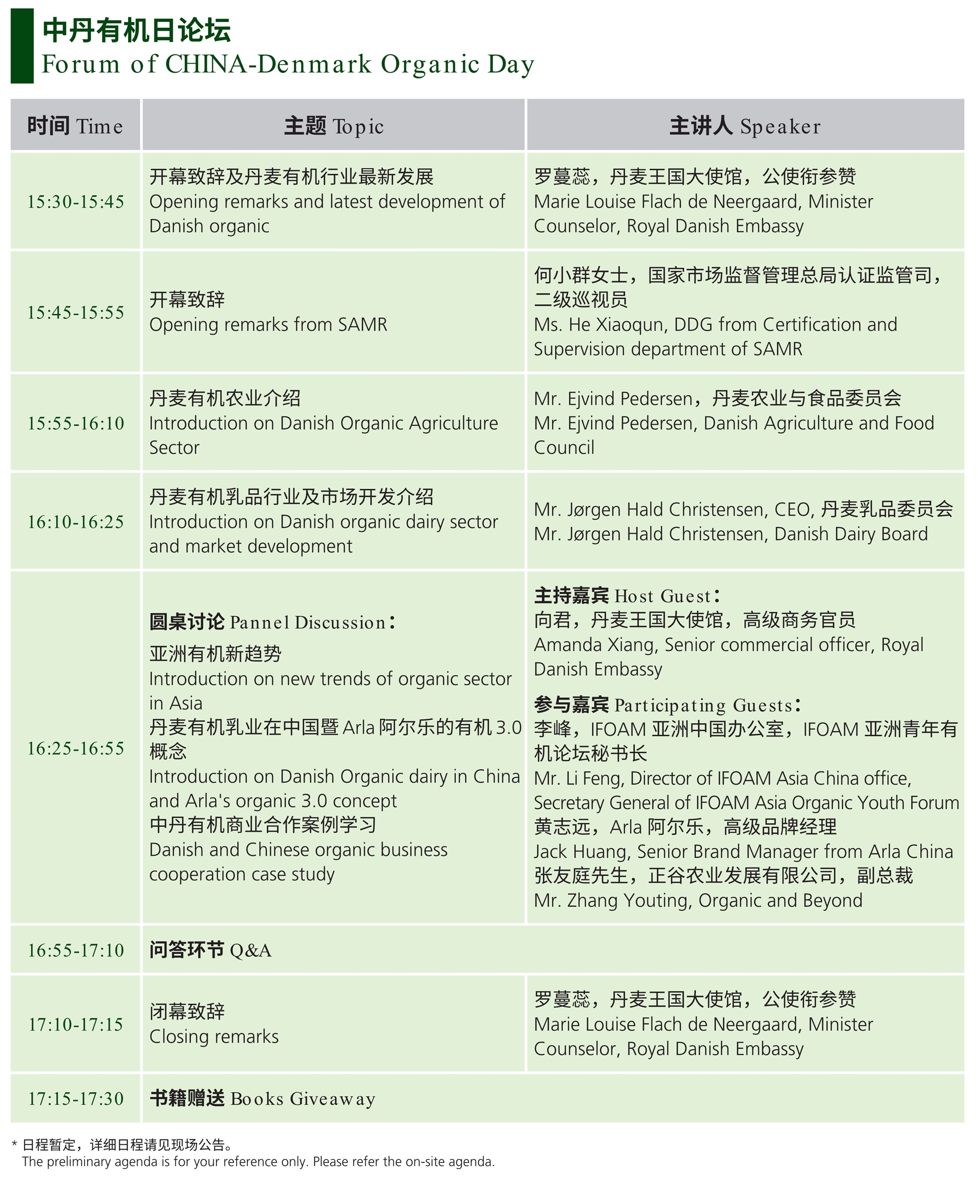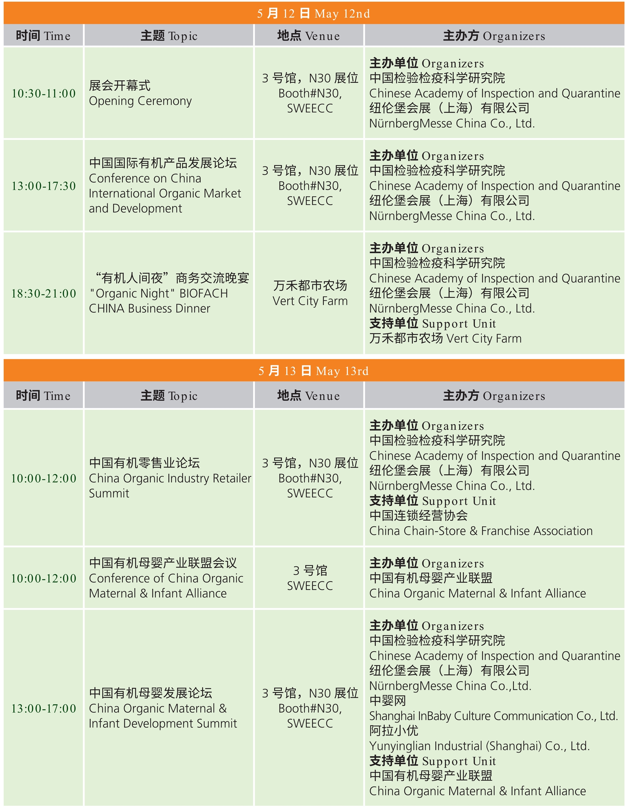本次展會將有三場精彩的論壇活動,除了展會特有的國內外有機行業趨勢發布及預測、有機母嬰行業發展痛點解讀,展會新增“中國丹麥有機日”“中國有機零售行業論壇”,共同探索有機行業新機遇。全球專業大咖強勢坐鎮主論壇,探討未來發展道路,即便面對新冠疫情,我們仍然可以向陽生長!