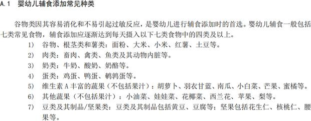 除了日常的母乳喂養,為了全面營養的補充身體所需,國家衛健委在《嬰幼兒輔食添加營養指南》(WS/T678—2020)中也為新手媽媽貼心地提出了制作輔食時建議添加的七類常見食物,新手寶媽們可以從中選擇: